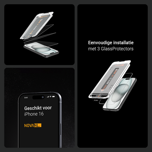 • NOVANL 3-Pack Screen Protectors voor iPhone 16 met Installatiekit
